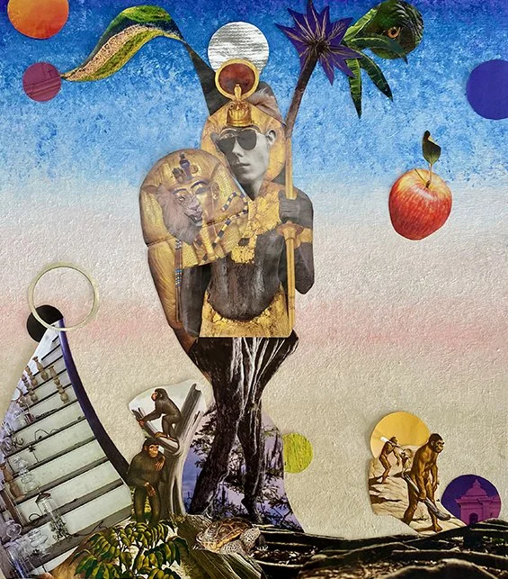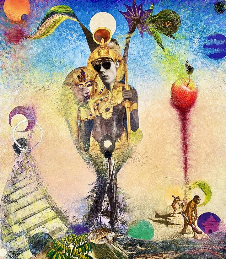 Some Kind of Psychopomp, by Christy Higgins, 2023, Mixed-media collage on wood box panel. Original artwork and prints available.